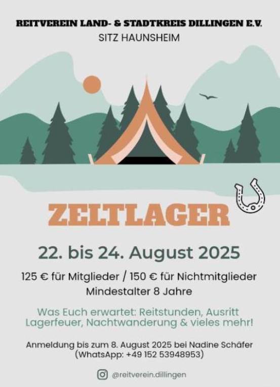 Hallo Kinder, der Youngrides Club des Reitvereins in Haunsheim veranstaltet auch dieses Jahr wieder ein Zeltlager unter dem Motto Spiel und Spaß mit dem Pferd. Teilnehmen kann jeder, ob unerfahrener oder fortgeschrittener Reiter. Euch erwartet ein vielfältiges Freizeitprogramm. Wir werden viel Spaß zusammen haben. Für weitere Informationen besuche bitte unsere JUGEND-Seite links von hier...